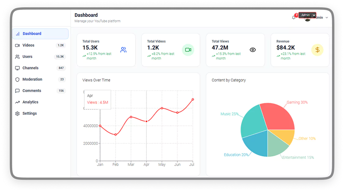 Our YouTube Clone app offers multiple subscription plans for your audience, from free viewers to premium subscribers. Admin can customize pricing, benefits, and everything.