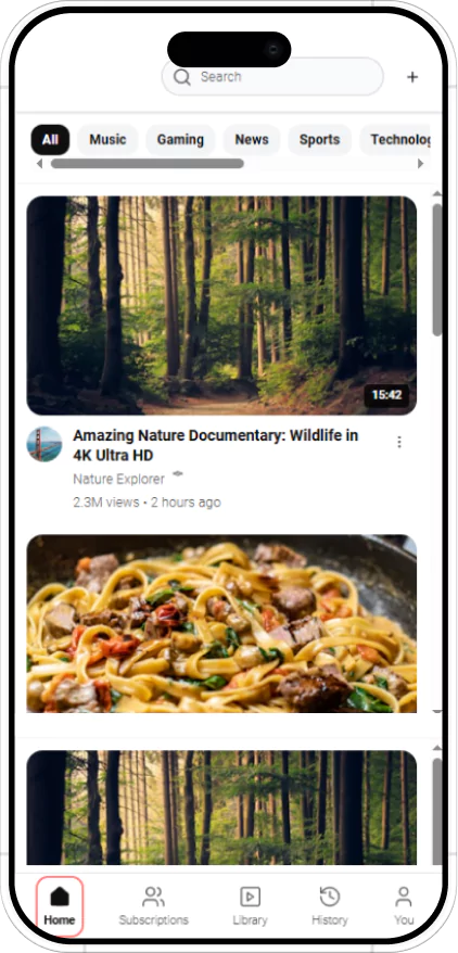 In this YouTube clone app, users can easily access their watch history to rewatch and check their previously watched content.