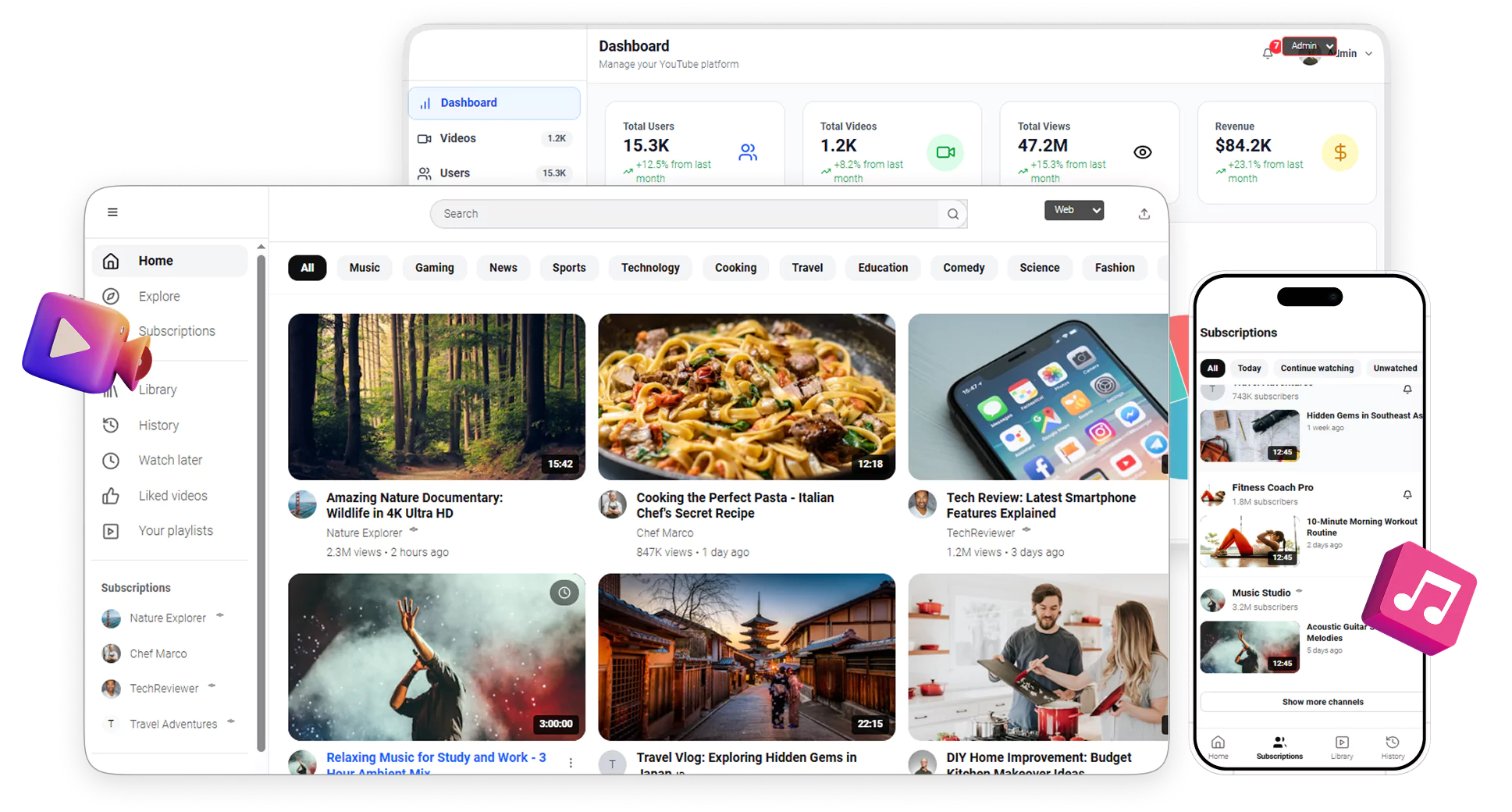 Launch your YouTube clone with a completely responsive, trending web version for flawless viewing on any device.